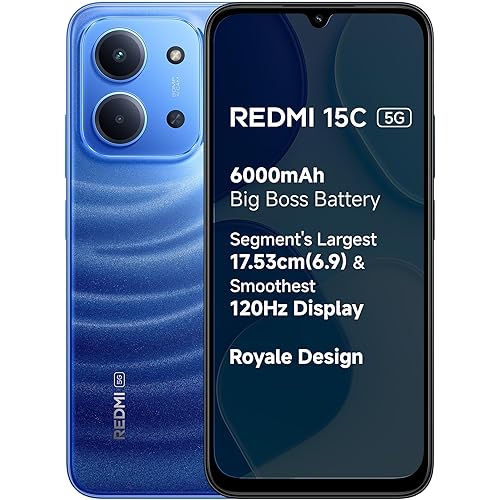 REDMI 15C 5G Moonlight Blue 4GB + 128GB | Royale Design | Massive 6000mAh Battery | Segment’s Largest Display 17.53cm Up to 120Hz | MediaTek Dimensity 6300 | 33W Fast Charging | 50MP AI Dual Camera