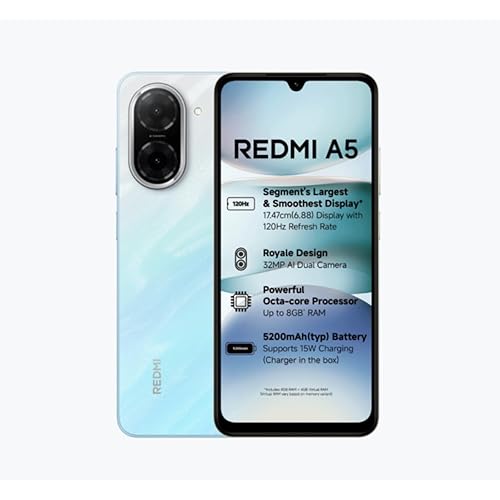 Redmi A5 Pondicherry Blue(3GB RAM 64GB Storage) | Royale Design | Segment’s Largest 17.47cm(6.88) and Smoothest 120Hz Display | 5200mAh Large Battery | Expandable Storage up to 2TB