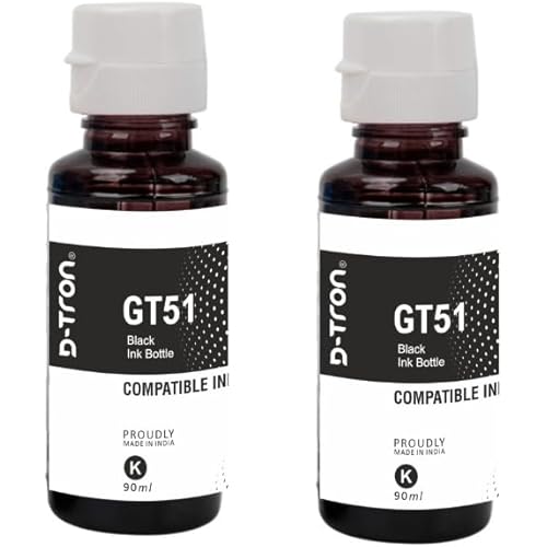Refill Ink for HP GT51XL/53XL GT 52 for HP Ink Tank 115 310 315 319 410 415 416 419 455 500 515 520 525 530 589 615 750 790 670 GT5810 GT5811 GT5820 (Black(2pcs))