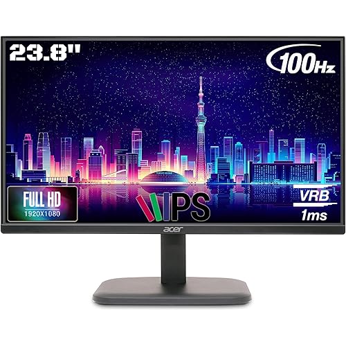 (Refurbished) Acer EK240Y E 23.8 Inch IPS Full HD 1920×1080 Backlit LED LCD Monitor I 1 MS VRB, 100Hz Refresh I 250 Nits I Zero Frame I HDMI & VGA Ports with HDMI Cable I AMD Free Sync I Eye Care Features (Black)