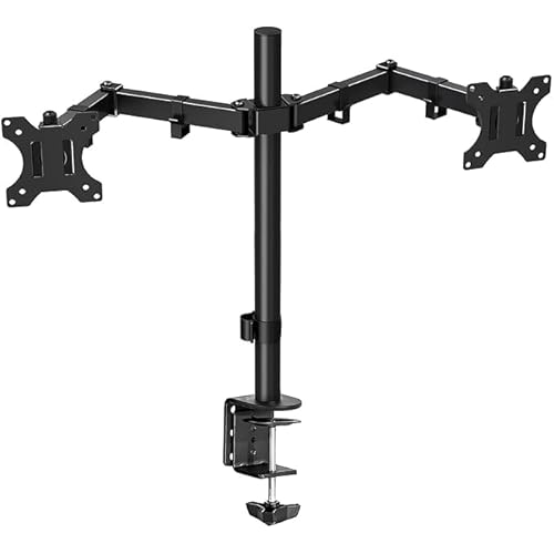(Refurbished) Heavy Duty Dual LCD Tukzer Monitor Desk Mount Stand with C-Clamp for 13 to 27-Inch Screen| Height Adjustable Arm Mount, Swivel & Tilt Support, Articulating Stand with Universal Vesa Plates (Black)