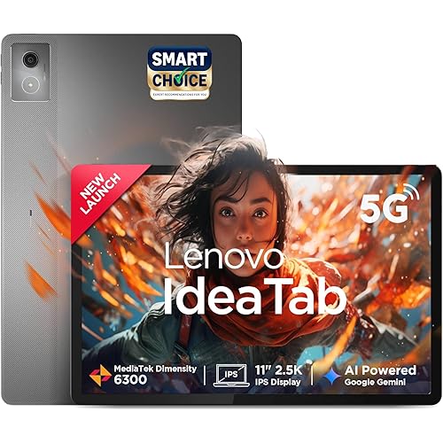 (Refurbished) Lenovo Idea Tab Smartchoice | Wi-Fi + 5G |11″ Display, 2.5K Resolution, 90Hz Refresh|8GB RAM, 256GB ROM| MediaTek Dimensity 6300| 7040mAh|4 Speakers| USB-C| Luna Grey