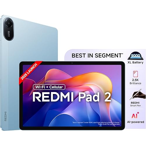 (Refurbished) Redmi Pad 2 Wi-Fi + Cellular, Active Pen Support, 27.94cm(11″) Model, 2.5K Sharp & Clear Display, 6GB, 128GB, All Day & More 9000mAh Battery, AI-Enabled, Dolby Atmos, HyperOS 2, Sky Blue