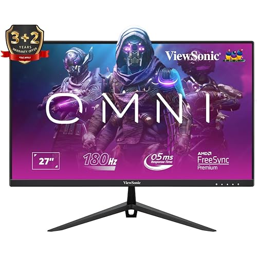 (Refurbished) ViewSonic Omni 27 Inch Full Hd Fast IPS Gaming Monitor with 0.5Ms,165Hz, Hdr10, AMD Freesync Premium,Vesa Adaptive Sync,Speaker,Hight Adjustable, & 5Year Warranty Upon Registration -Vx2728J, Black