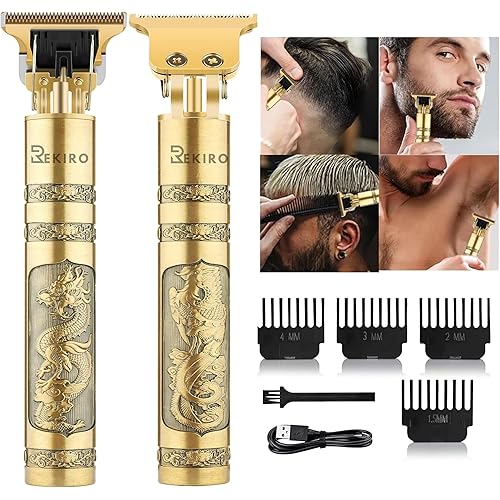 REKIRO Trimmer Men Hair Clipper Cordless Dragon Style Rechargeable Trimmer for Beard, Hairs, Moustache and Face, Electric T Blade Zero Gapped Professional Shaving Machine Men’s Grooming Kit