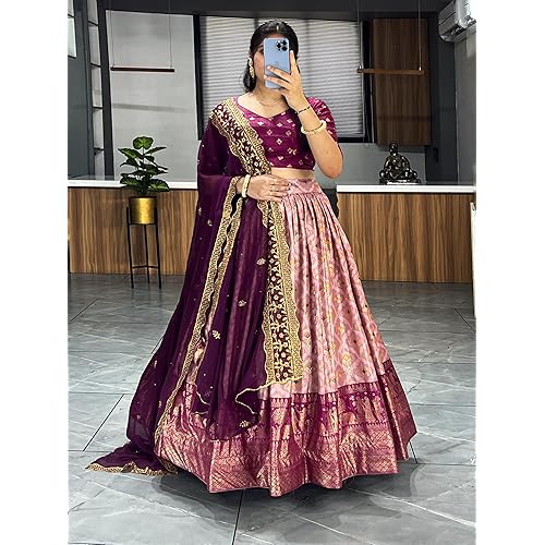8 reviews for RENTOOR Soft Dola Silk Bandhani Print Lehenga Collection (WINE) (WINE)