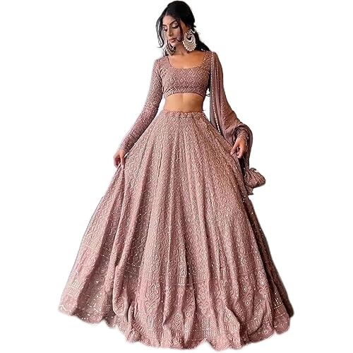 RENTOOR Women’s Embroidered Georgette Lehenga Choli for Women I Morpeach I Designer I New I Bridal I Navratri I Bollywood I Stylish I Ready to wear I Lehenga for women (peach)