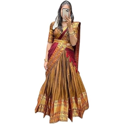 32 reviews for RENVAANI FASHION Women’s Indian Traditional Unstitched Kanjivaram Kanchipuram Silk Pure Zari Weaving Lehenga Choli Along With Dupatta Attach With Unstitch Blouse Piece, Half Saree (HT143)