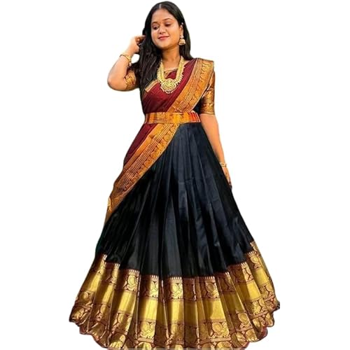 37 reviews for RENVAANI FASHION Women’s Indian Traditional Unstitched Kanjivaram Kanchipuram Silk Pure Zari Weaving Lehenga Choli Along With Dupatta Attach With Unstitch Blouse Piece, Half Saree (HT143)