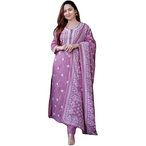 River of cloth Rayon Embroidered Kurta Pant Set for Women with Dupatta || Festive and Casual Wear Salwar Suit with 3/4th Sleeves