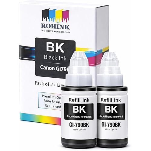 ROHINK GI-790 Black Ink Bottle Compatible Printer for Canon G1010 G2000 G2002 G2010 G2012 G3000 G3010 G3012 G4010 (135ml X 2 Black)