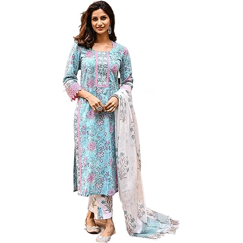 317 reviews for Royal Export Women’s Skyblue Floral Printed Salwar Suit Set