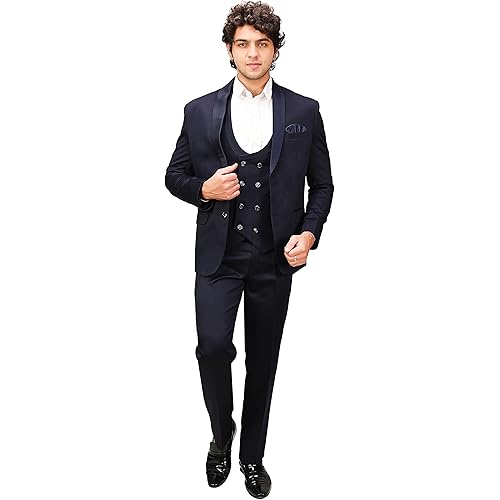 Royal Rich Men’s Regular Fit Three Piece Suit, Coat Pant Set with Waist Coat