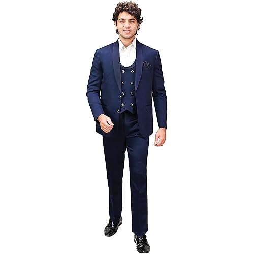 Royal Rich Men’s Regular Fit Three Piece Suit, Coat Pant Set with Waist Coat