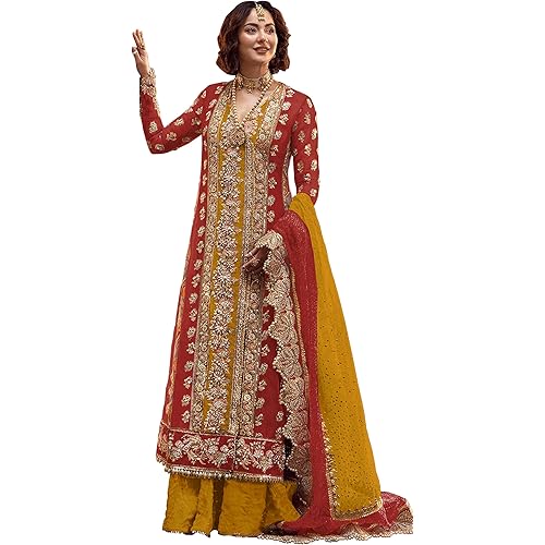 17 reviews for RUDRAPRAYAG Women’s Traditional Organza Embroidered Semi Stitched Anarkali Suit Set With Embroidered Dupatta