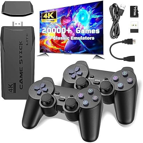RUG Wireless Console Retro Video Game for TV- 4K Ultra HD |Video Game | Gaming Console| Retro Game Stick |Built-in 21000 +TV Game with Games & 64Gb,Retro Game Console, Plug & Play Video TV Game 4K Ultra Games| 9 Emulators|Dual-Player Setup|2.4G Wireless Game Stick for all age Group easy to use roller BLACK.
