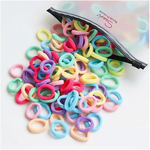 Saavi Ponytail Holder (Light Multicolor, Pack of 100) Cotton Mini Hair Elastic Rubber Bands for Pony | Tight, Non-slippery, Stretchable | Cotton Elastic Rubber Bands for Kids, Girls