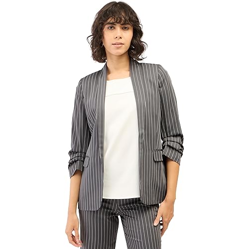 Collection Name : kurin Fabric Name : viscose-suiting Style name : Spunky-Charcoal Grey Stripes Color : Grey & White Season : SS24