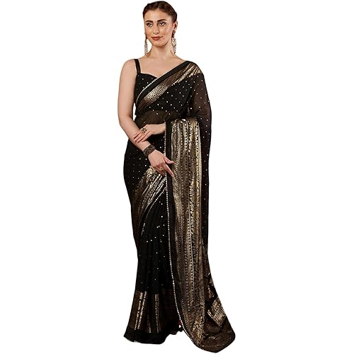 40599 reviews for SAMAH Women’s Georgette Foil Printed Lace Work Saree with Unstitched Blouse Piece