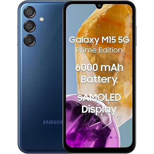 Samsung Galaxy M15 5G Prime Edition (Blue Topaz,6GB RAM,128GB Storage) | Super AMOLED Display| 50MP Triple Cam| 6000mAh Battery| MediaTek Dimensity 6100+ | 4 Gen. OS Upgrade & 5 Year Security Update