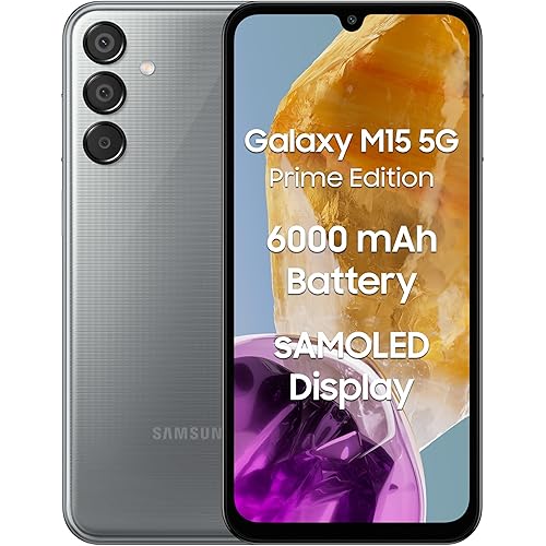 2413 reviews for Samsung Galaxy M15 5G Prime Edition (Stone Grey,6GB RAM,128GB Storage)| Super AMOLED Display| 50MP Triple Cam| 6000mAh Battery| MediaTek Dimensity 6100+| 4 Gen. OS Upgrade & 5 Year Security Update