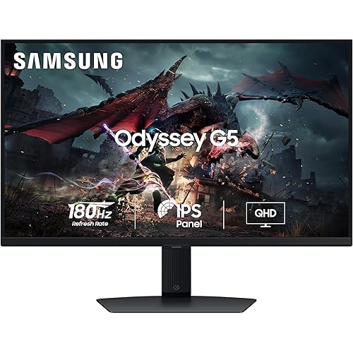 Samsung 27″ (68.5cm) Odyssey G5 Fast IPS 2K Gaming Monitor|QHD 2560 x 1440|180 Hz|1ms|350nits|HDR 400|AMD FreeSync|Ports-DP,HDMI,Headphone|Height-Tilt-Pivot Adjustable Stand|LS27DG502EWXXL|Black
