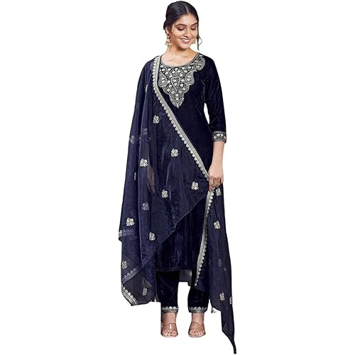 9 reviews for Sanisa Women’s Velvet Embroidery Straight Kurta with Pant and Embroidery Dupatta