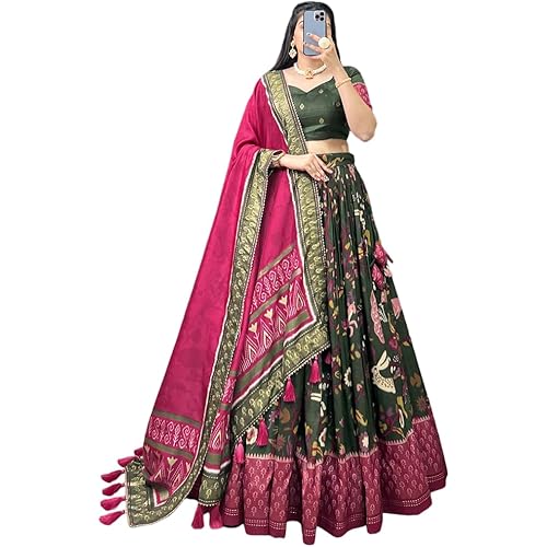 Sarathybiz Woman’s perfectly Navratri Collection Tussar Silk Lehenga Choli Patola Print with Foil Work