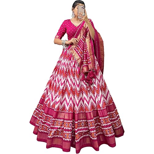 Sarathybiz Women,s Tussar Silk With Patola Print And Foil Print Lehenga choli Set
