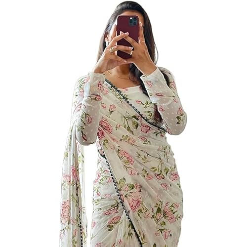- Package Includes: One Digital Floral Printed Ready-to-Wear Georgette Saree