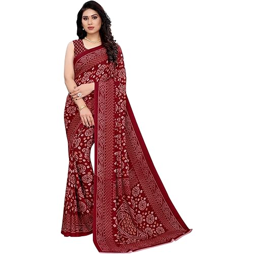 Satrani Women’s Georgette Bandhani Printed Saree with Blouse Piece