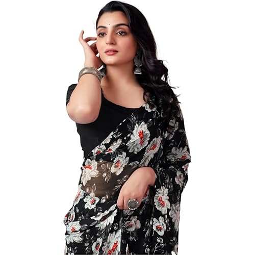 27 reviews for Satrani Women’s Georgette Printed Satin Patta Saree with Unstitched Blouse Piece