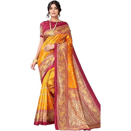 Satrani Women’s Printed Poly Silk Saree with Unstitched Blouse Piece