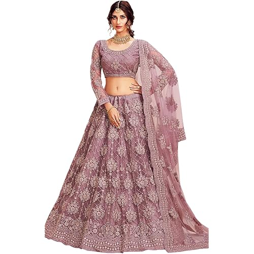 SATVASHIV Women’s Semi Stitched Net Lehenga Choli with Embroidered Pattern Unstitched Blouse Piece and Dupatta Set | Women’s Lehenga Choli