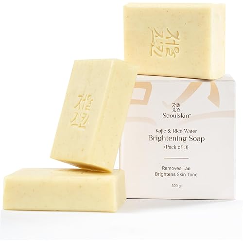 425204 reviews for Seoulskin Kojic & Rice Water Brightening Soap | Pack of 3 | Glowing & Brightening Soaps for bath | For Pigmentation, Dark Spots, Sun Damage | Tan Removal Soap Bar for men and women | Brightens Underarms | Paraben Free | All Skin Types | 3 X 100g
