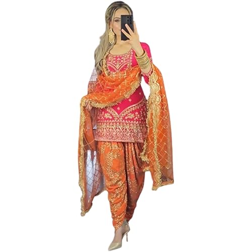 SHAFNUFAB WOMEN’S Georgette Semi-Stiched lehnga (SF26144-L SIZE Orange Free Size)