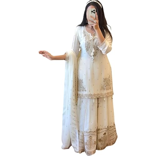 35511 reviews for SHISHKALA Women’s White Embroidered Sharara Suit Set | Georgette Kurta with Dupatta | Wedding & Festive | Ready to Wear Indian Ethnic Outfit