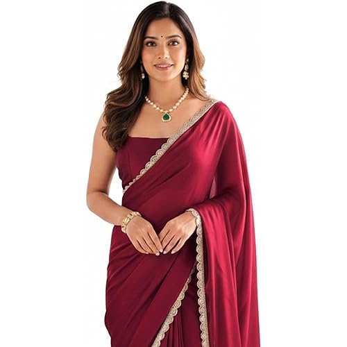 425134 reviews for SHOPAZ Ready To Wear Saree For Women Maroon Georgette One Minute Readymade Stitched Scalloped Border With Unstitched Blouse