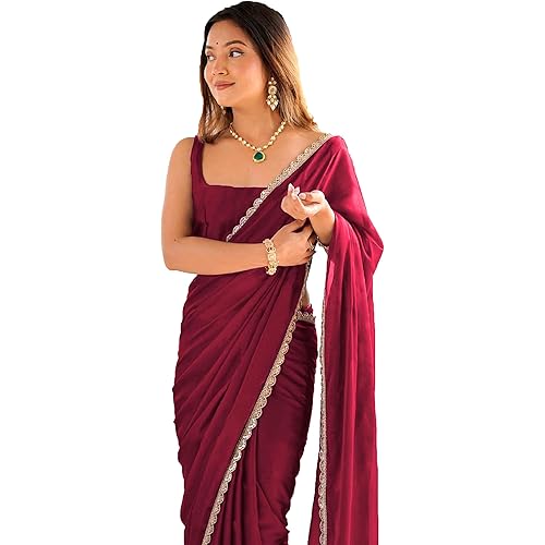 40570 reviews for SHOPAZ Ready To Wear Saree For Women Maroon Georgette One Minute Readymade Stitched Scalloped Border With Unstitched Blouse