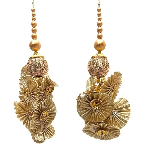 Shoppingover Synthetic Gota Patti Latkan For Lehenga Blouse Tassels Handmade Gold Tassels (Pack Of 2 Latkans)