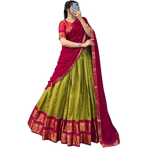 Shreeaanta Women’s Indian Traditional Banarashi Silk Pure Zari Weaving Lehenga Choli and havay zari work Dupatta with Blouse (All Unstitched) (Half Saree)