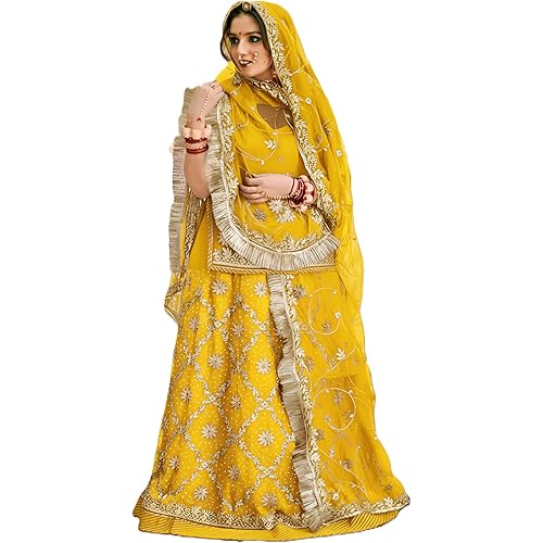 SHYAMLATA Latest Heavy Embroidery Work Semi Stitched Shimmer Silk Rajputi Poshak For Women Rajasthani Lehenga Choli