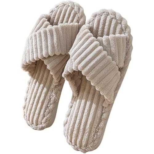 SILENCIO Slippers for Women House Bedroom Furry Cross Bands Slide Shoes Anti-Skid Sole Open Toe Slippers Indoor & Outdoor