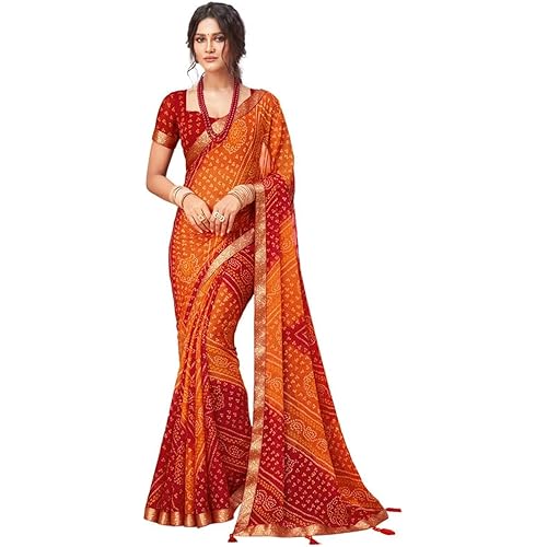 385865 reviews for SIRIL Women’s Bandhani Printed Chiffon Saree with Blouse