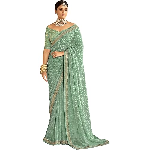 SIRIL Women’s Bandhani Printed Embroidery Georgette Saree with Unstitched Blouse Piece