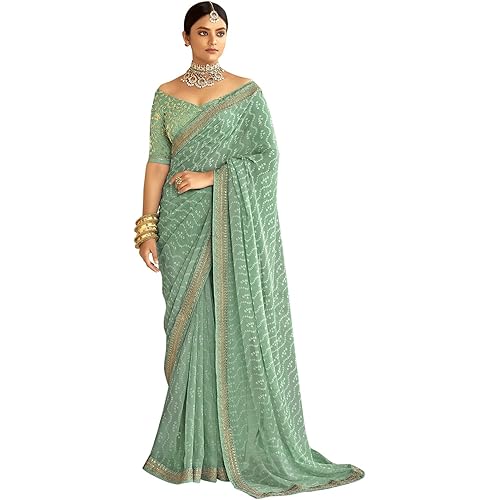 Saree Fabric : Georgette | Blouse Fabric : Bhagalpuri Silk Length :: Saree : 5.50Mtr | Blouse(Unstitch Fabric) : 0.80Mtr, Which Need To Be Stitched As Per Size And Fit Colour :: Saree : Mint Green | Blouse : Mint Green Work Type :: Saree : Bandhani P… read more