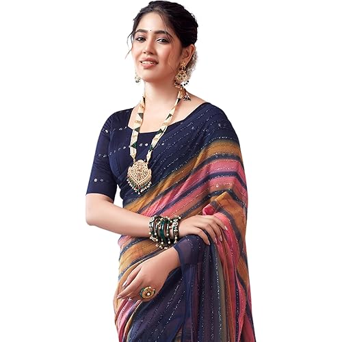 Saree Fabric: Georgette | Blouse Fabric: Poly Cotton | Work:: Saree: Printed Zari Stripe | Blouse: Dyed, Sequence Embroidery Length:: Saree: 5.50Mtr | Blouse: 0.80Mtr, Which Need To Be Stitched As Per Size And Fit | Package Content : 1 Saree With 1 U… read more