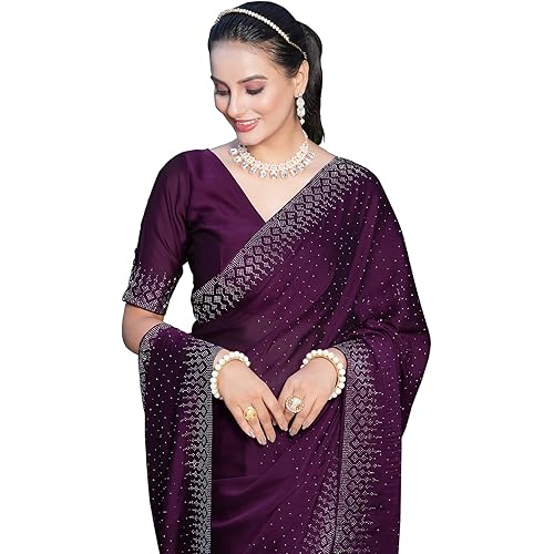 Saree Fabric: Georgette | Blouse Fabric: Georgette | Work:: Saree: Dyed, Hot Fixing | Blouse: Dyed, Hot Fixing Colour:: Saree Color: Purple | Blouse Color: Purple Length:: Saree: 5.40Mtr | Blouse: 0.80Mtr, Which Need To Be Stitched As Per Size And Fi… read more