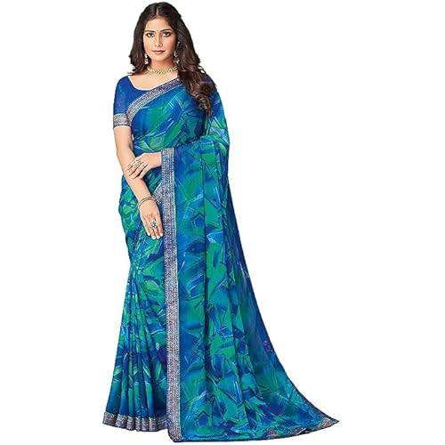SIRIL Women’s Lace & Printed Chiffon Saree with Blouse