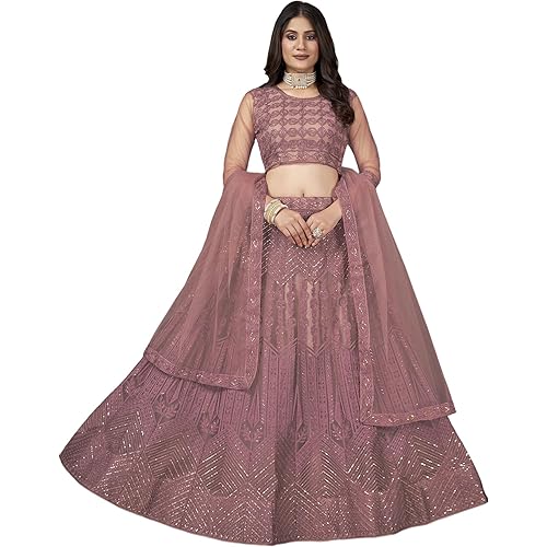 Fabric Detail:: Lehenga: Net | Blouse: Net, Crepe | Lehenga Inner Fabric: Crepe | Lehenga Dupatta Fabric: Net Color:: Lehenga: Mauve | Blouse: Mauve |Dupatta: Mauve Size:: Length: 46Inch | Waist: 44Inch Max | Ghera: 2.50Mtr | Blouse is un stitched wi… read more